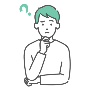 悩む・考える若い男性のイラスト(ハテナマーク・上半身)