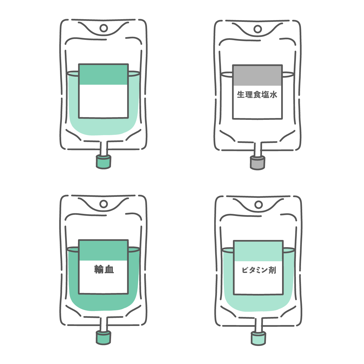 アイテム・アイコン 輸液パック(点滴バッグ)の種類イラスト(生理食塩水・輸血など)
