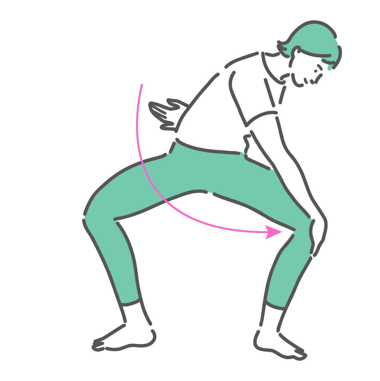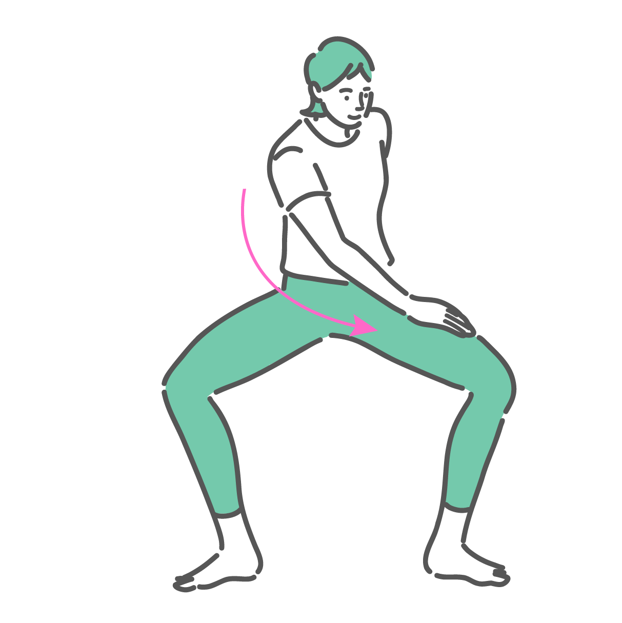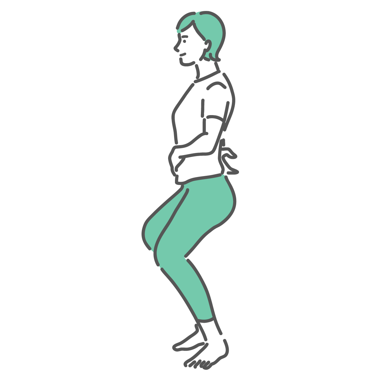 衛生・予防 腰割り体操の基本フォームで腰を落としているイラスト(五角形フォーム)