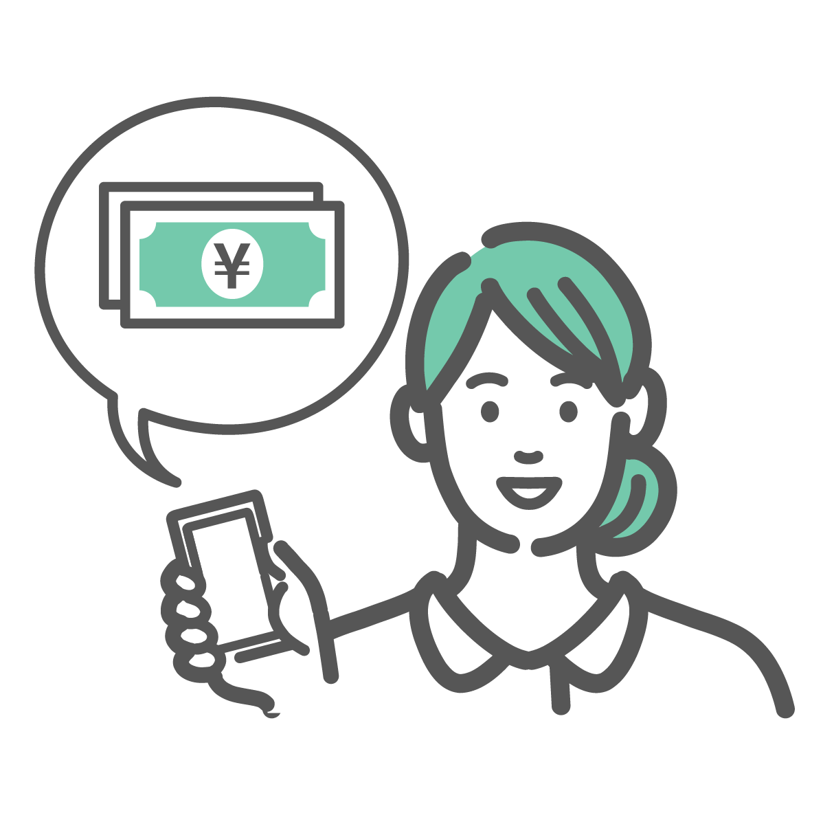 人物・アイテム スマートフォンで医療費や支払い金額を提示する女性看護師のイラスト
