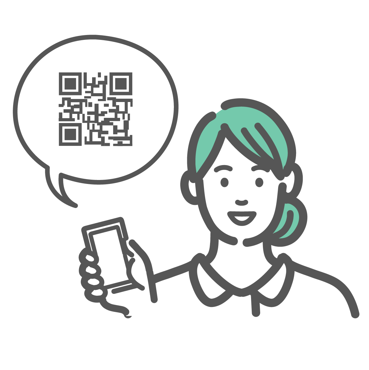 人物・アイテム スマートフォンでQRコードを提示・案内する女性看護師のイラスト