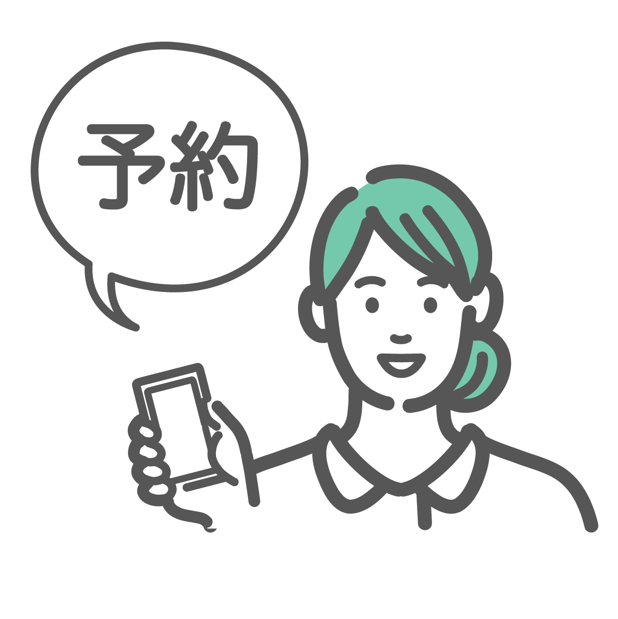 人物・アイテム スマートフォンで「予約」を案内する女性看護師のイラスト(オンライン予約・受付)
