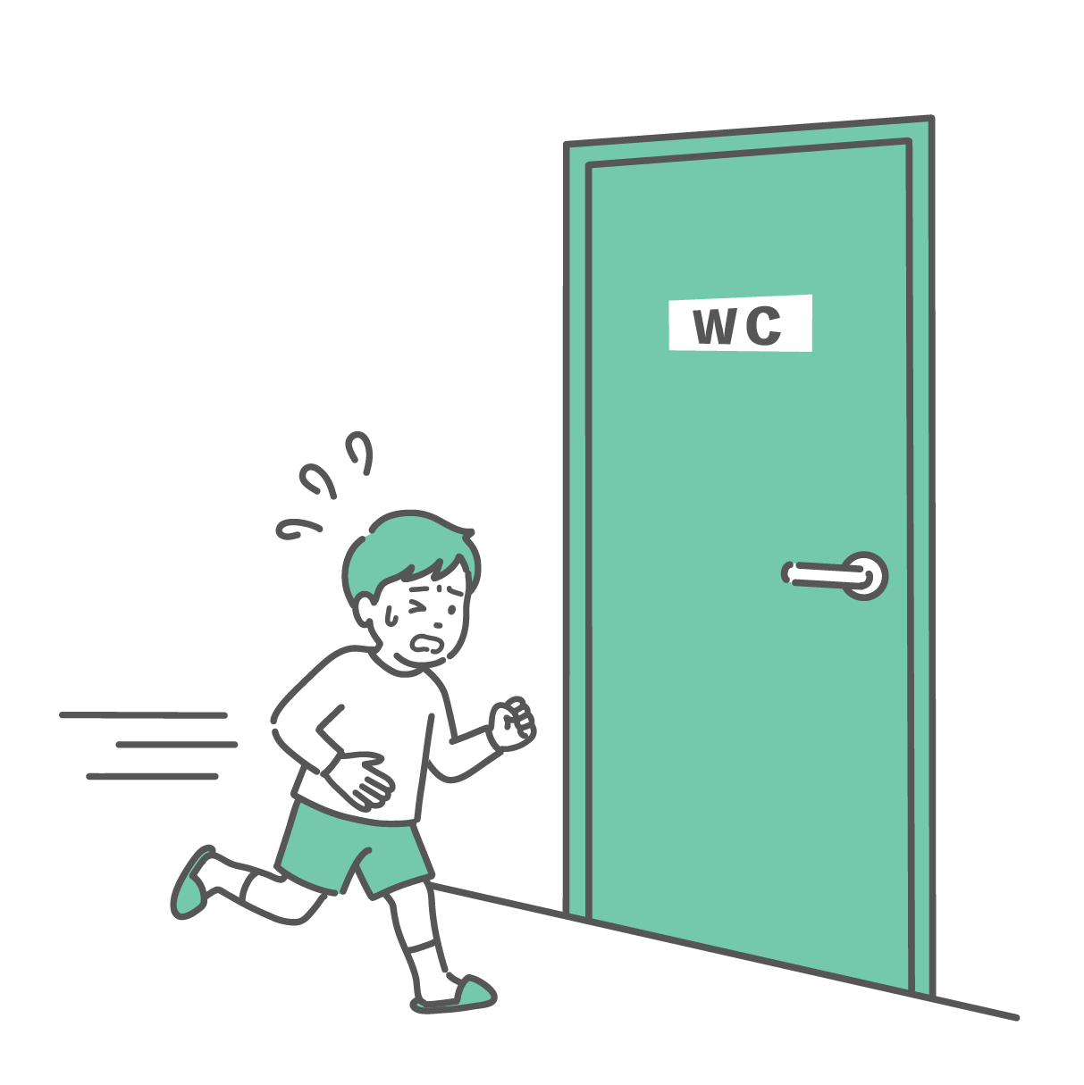 季節・アレルギー症状 トイレに駆け込む女の子のイラスト(腹痛・下痢・便意・子供)