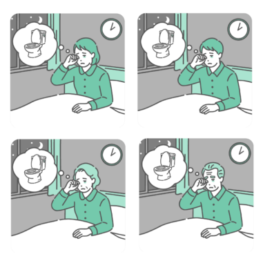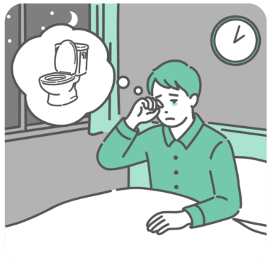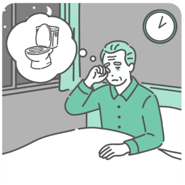 生活習慣 夜間頻尿で夜中にトイレに起きる男性のイラスト(糖尿病・睡眠障害・前立腺肥大)