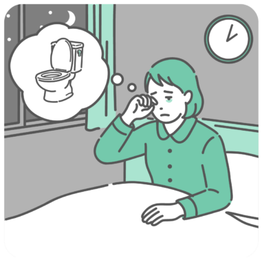 女性の健康・更年期 夜間頻尿で夜中にトイレに起きる女性のイラスト(糖尿病・膀胱炎・過活動膀胱)