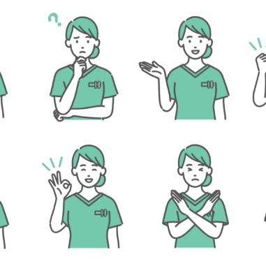 医師 スクラブ姿の女性医療従事者の表情・ポーズイラストセット(上半身・8種類)