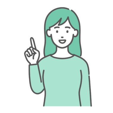 人物・属性 ポイントを説明する・指差しする若い女性のイラスト(人差し指を立てる・上半身)
