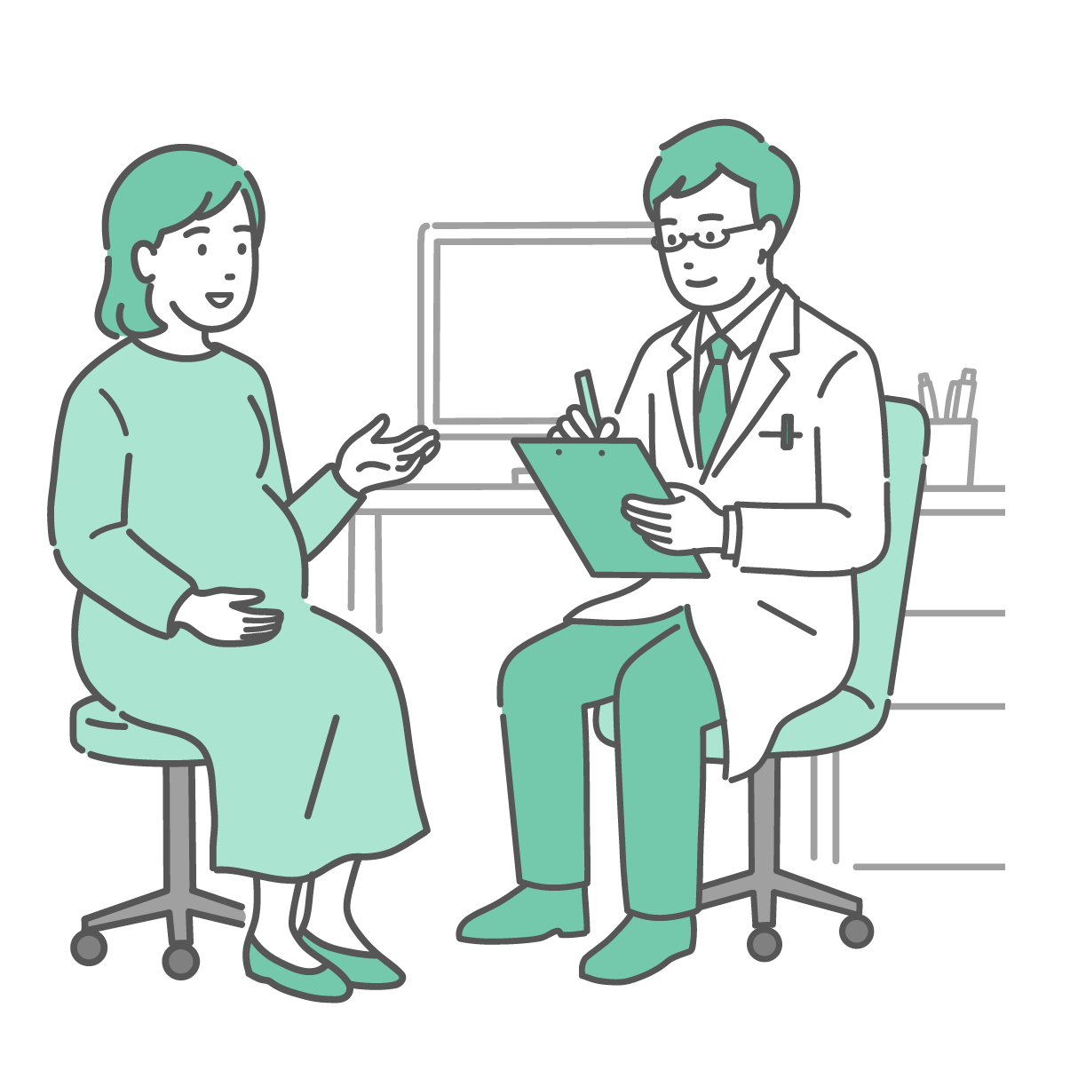 問診をする男性医師と妊婦(白衣・産婦人科・マタニティ)