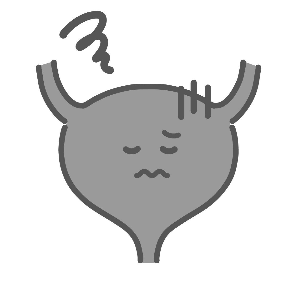 不健康な膀胱のキャラクターイラスト(不調・病気・ストレス)
