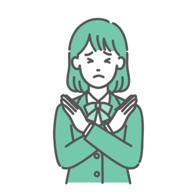 人物・属性 NGサインを出す・拒否するティーン女性・女子学生のイラスト(バツ印・制服・上半身)