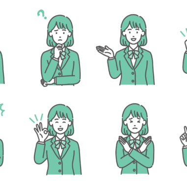 人物・属性 OKサインを出す・賛成するティーン女性・女子学生のイラスト(笑顔・制服・上半身)