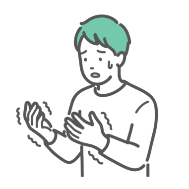 慢性的な痛み・不調 手の痺れ・震えに戸惑う男性のイラスト(手根管症候群・糖尿病・頸椎症)