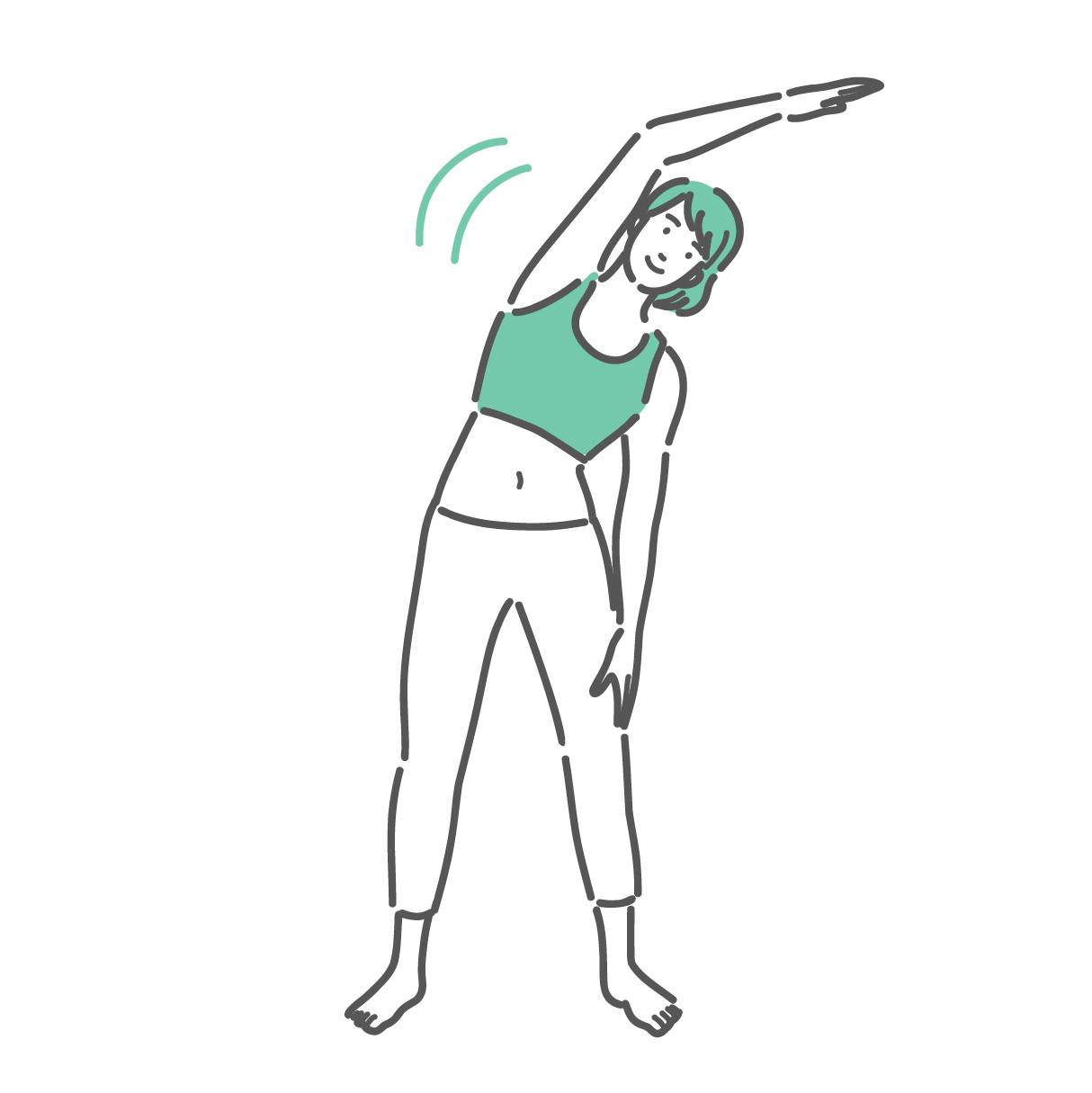 体側を伸ばすストレッチを行う女性