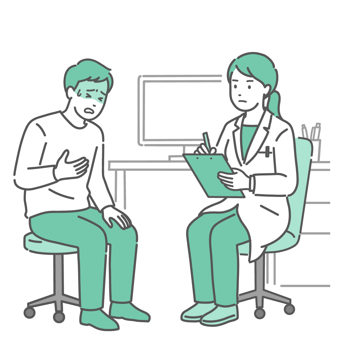 検査・測定 体調不良を訴える患者と女性医師(白衣・問診)