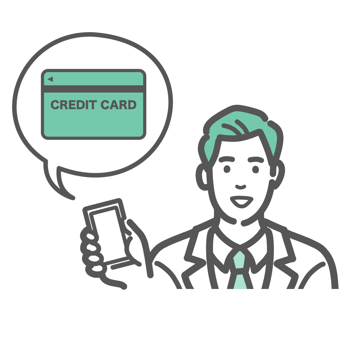 人物・アイテム スマートフォンでクレジットカード決済を案内する白衣の男性のイラスト