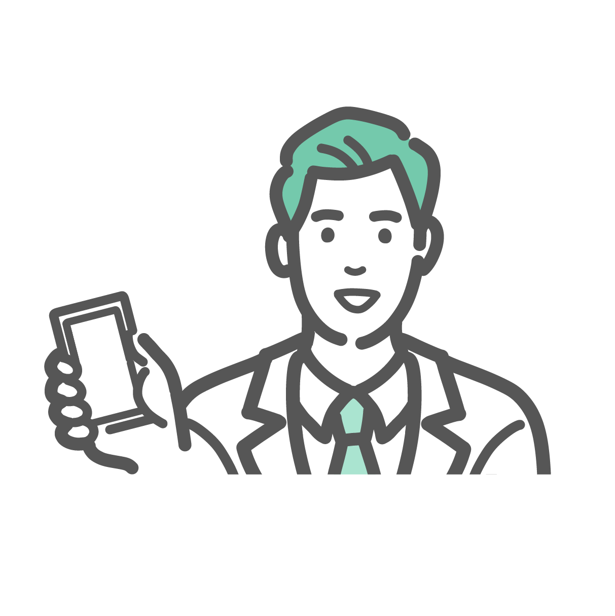 人物・アイテム スマートフォンを持ち、病院内のWi-Fi利用を案内する白衣の男性のイラスト