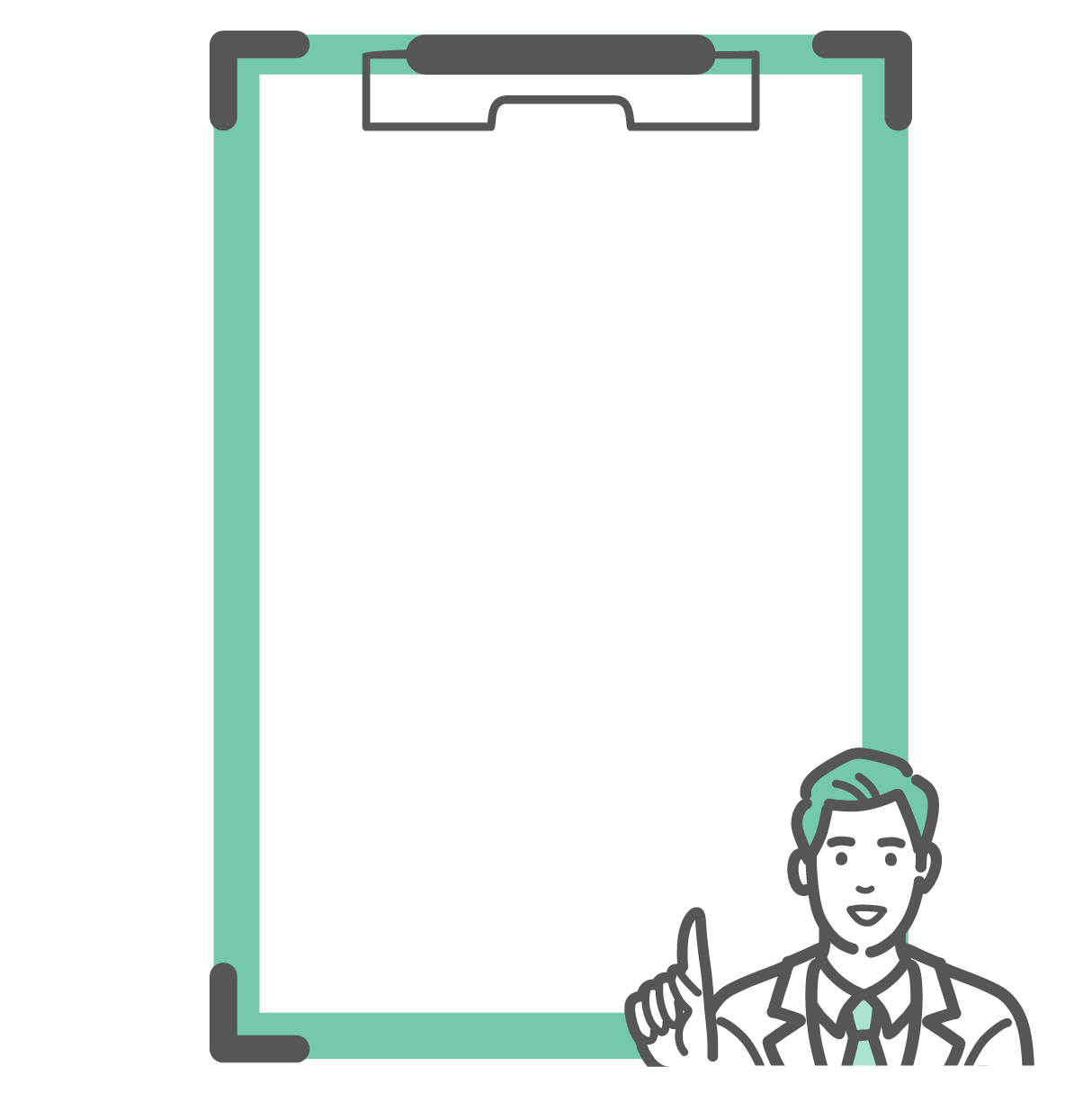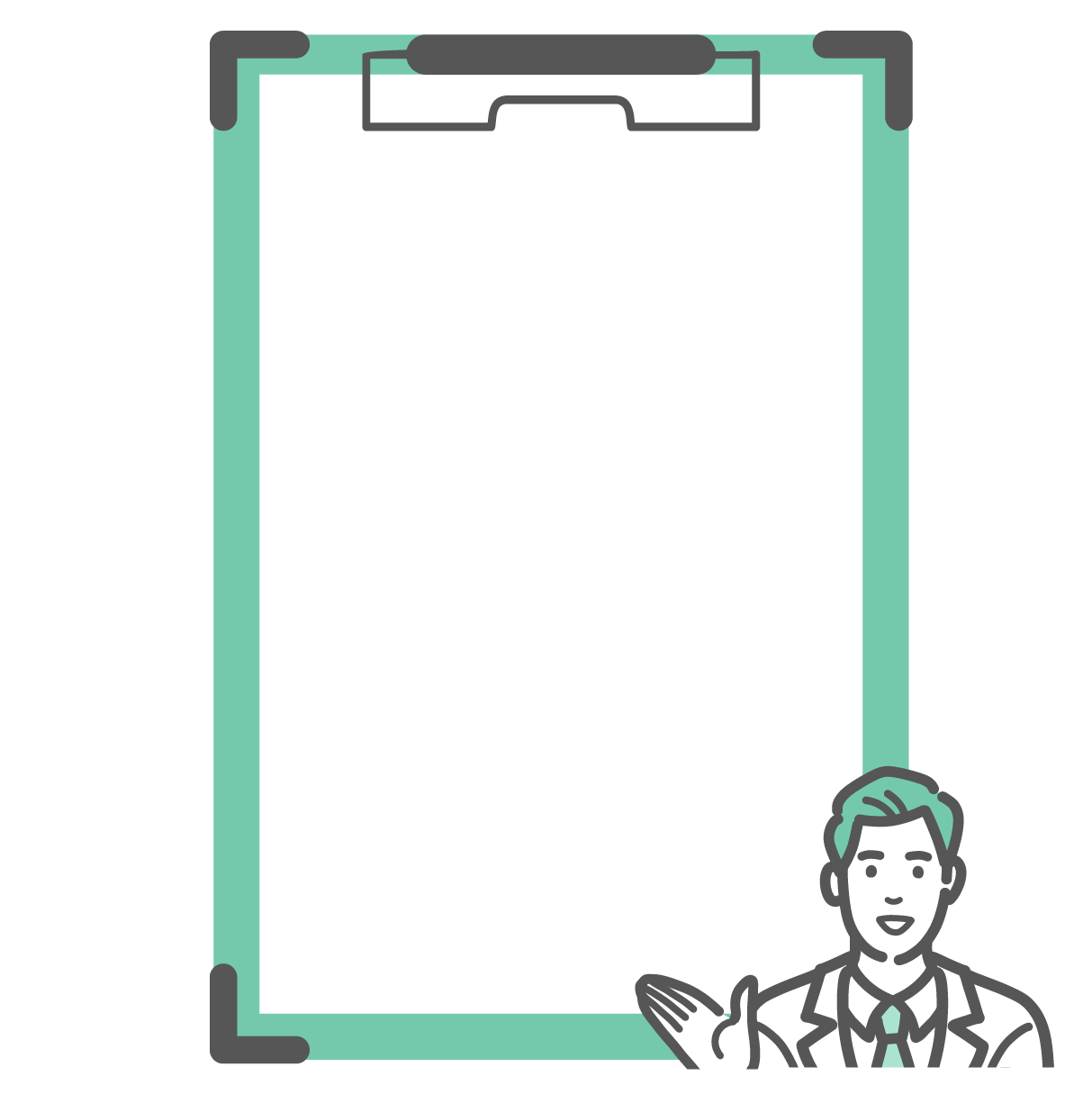 クリップボードを提示し、記入や確認を指示する白衣の男性のイラスト