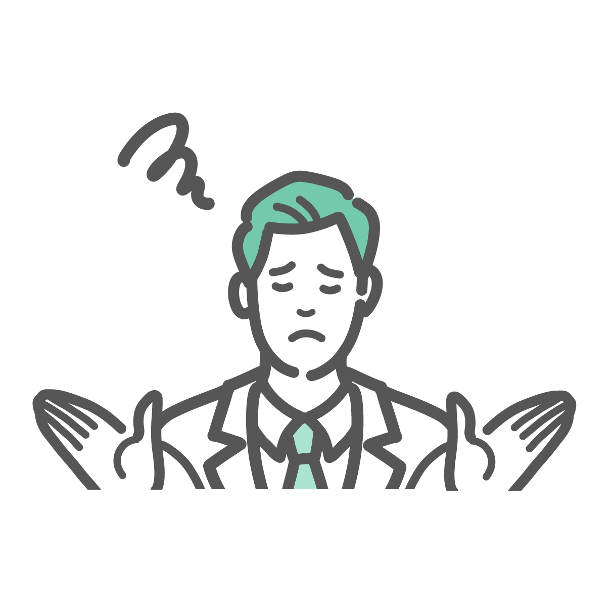 うつ・メンタル不調 両手を広げて困惑する女性のイラスト(質問・悩み・不調)