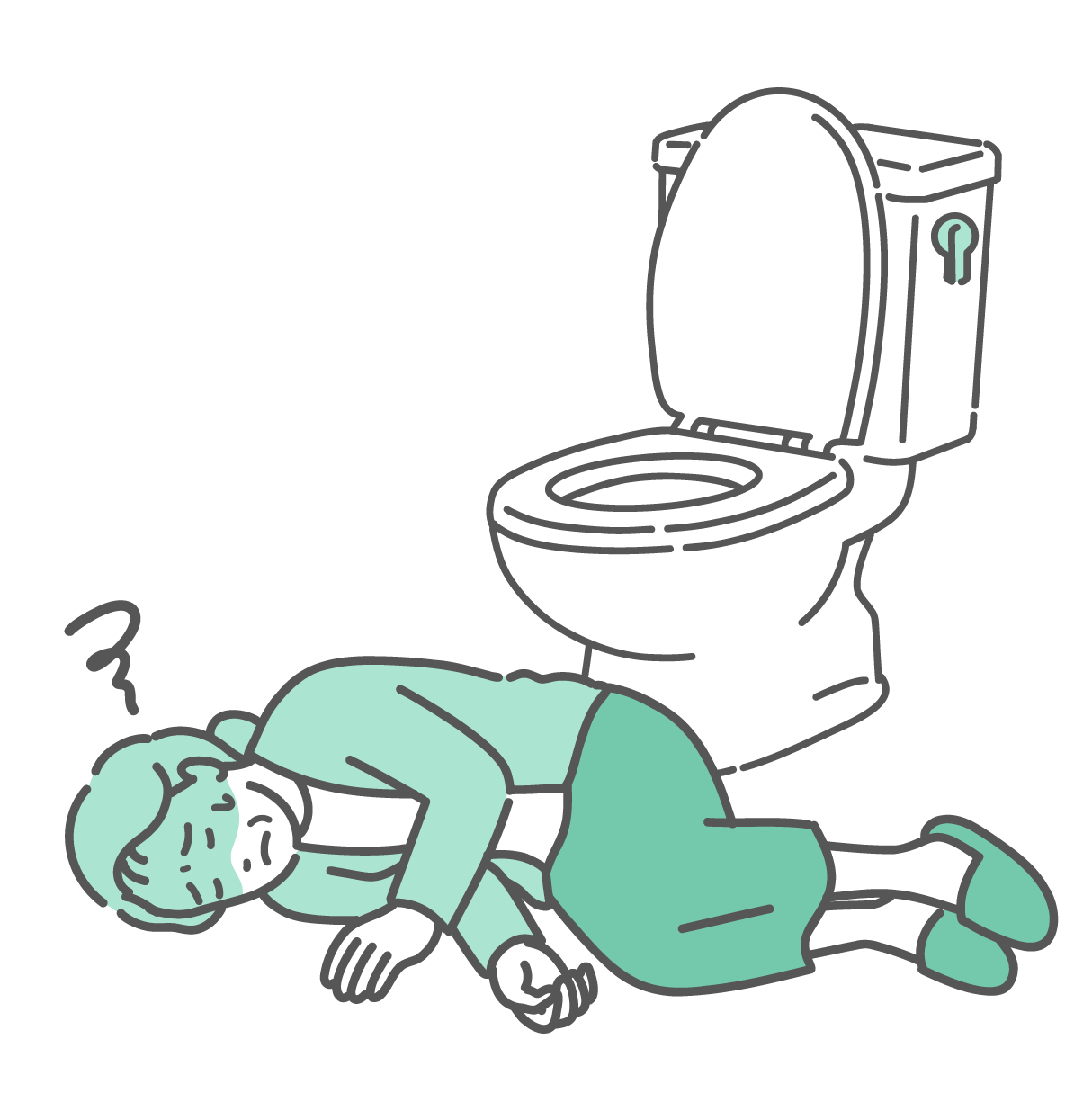 介護・福祉 トイレで意識を失い倒れている男性のイラスト(ヒートショック・失神)