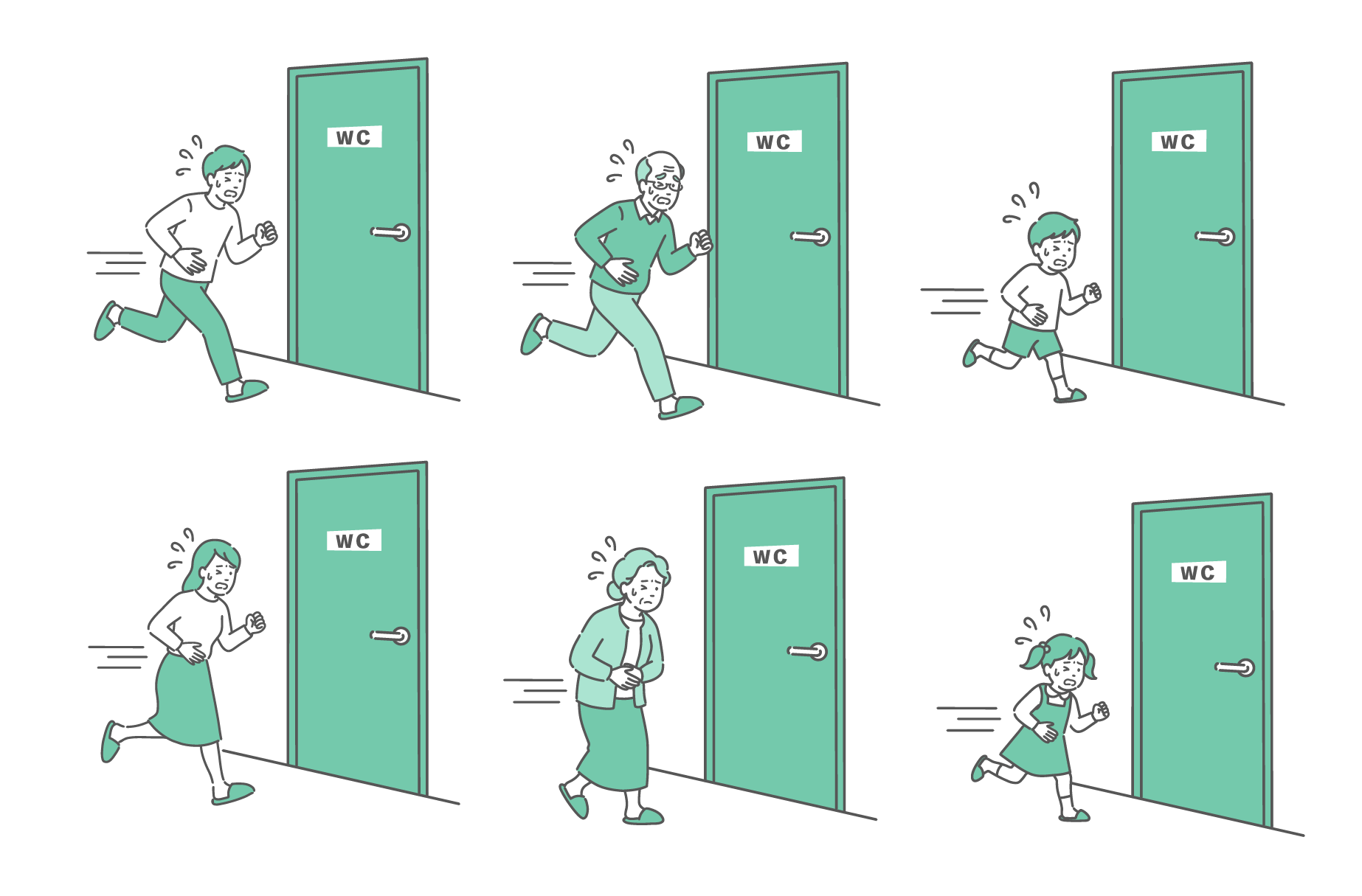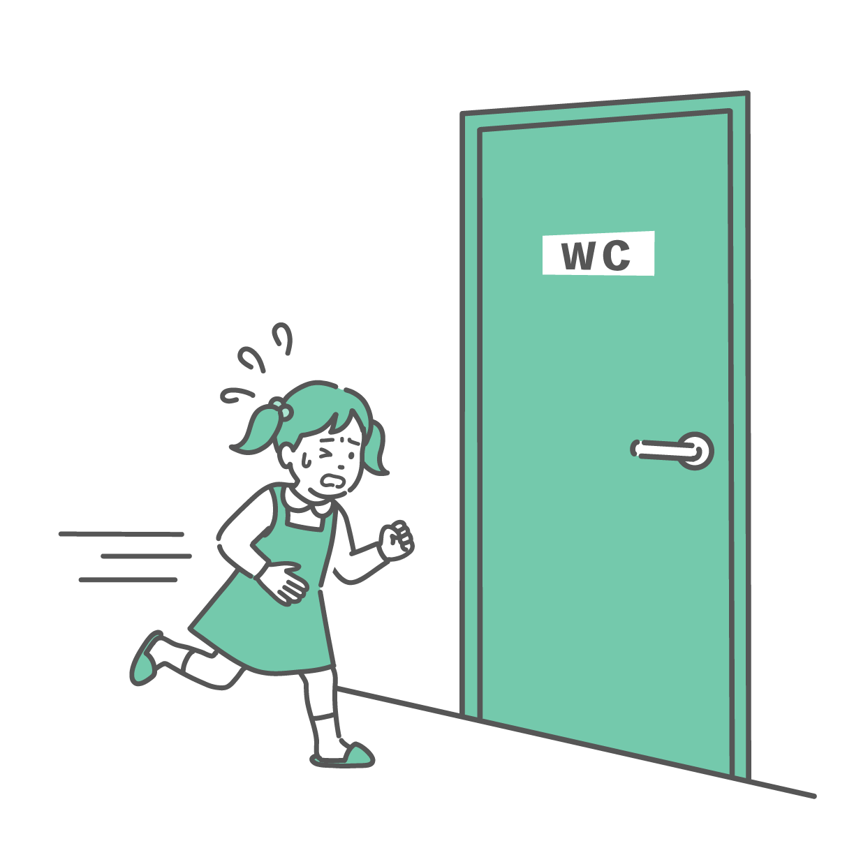 季節・アレルギー症状 トイレに駆け込む女の子のイラスト(腹痛・下痢・便意・子供)