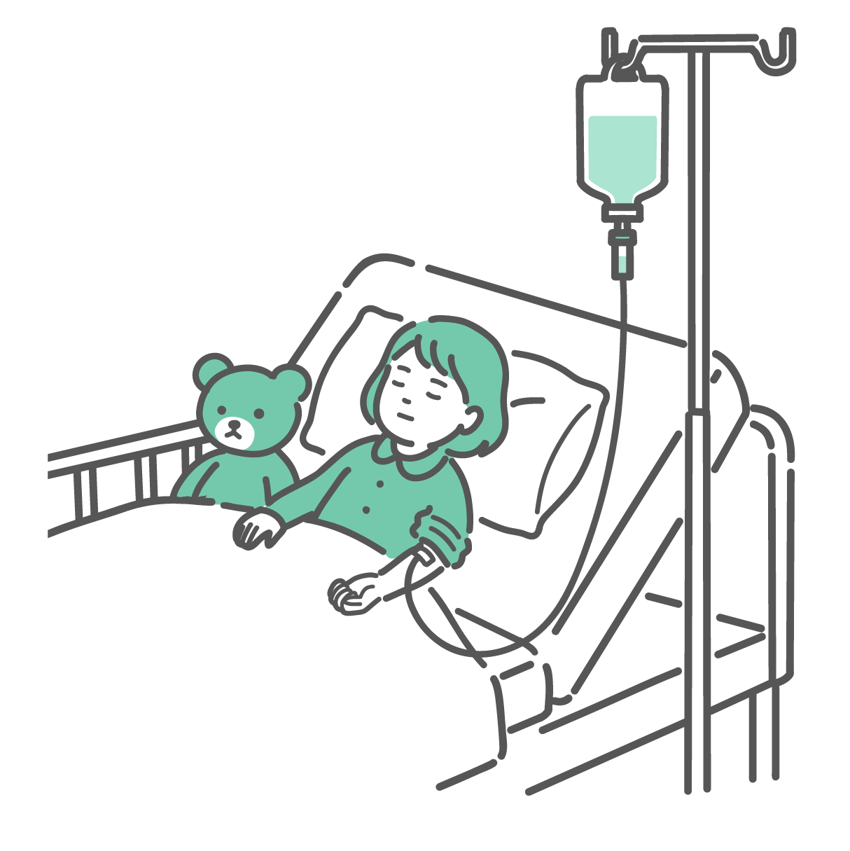 小児科・子供の健康 入院して点滴を受ける女の子のイラスト(小児科・安静)