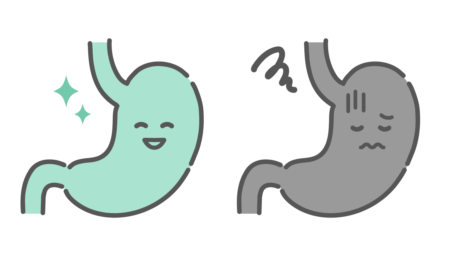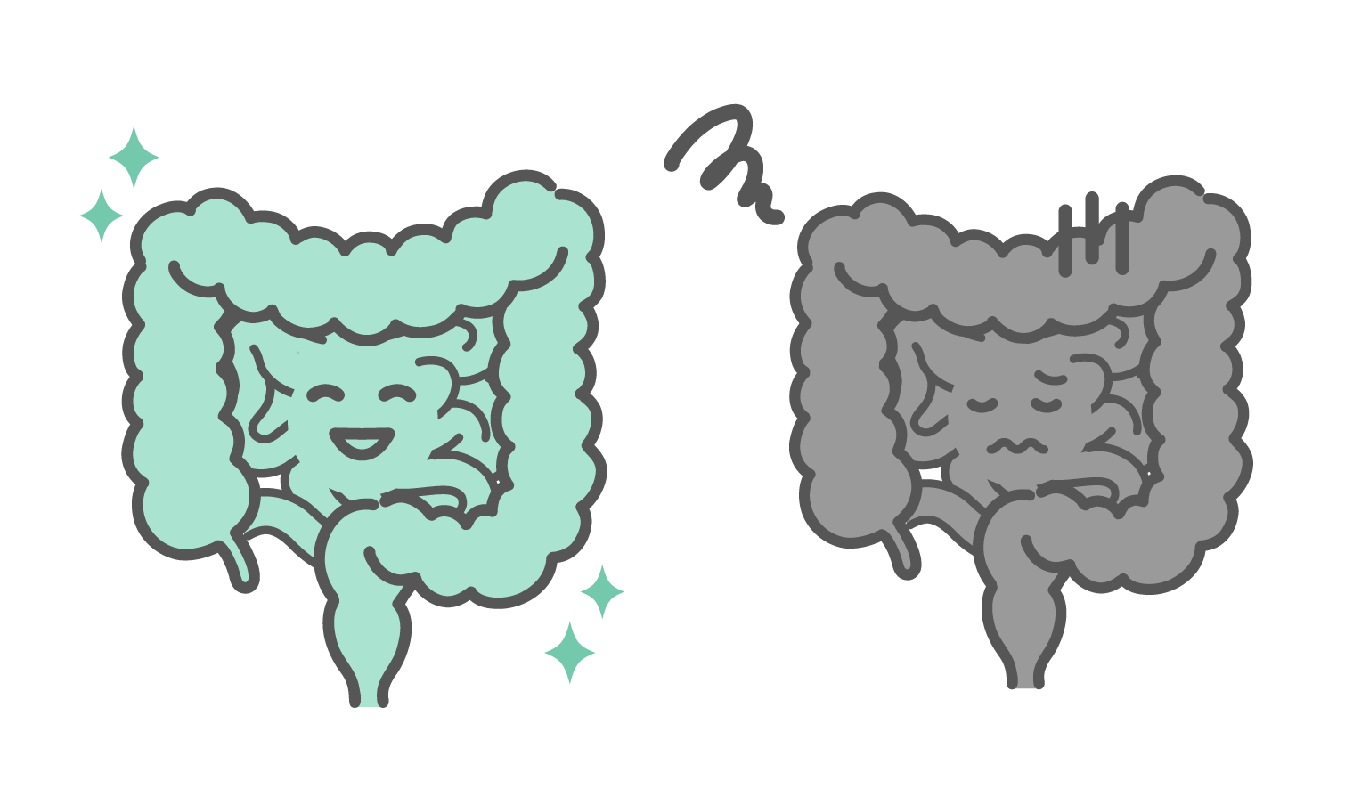アイテム・アイコン 健康な腸と不調な腸の比較イラスト(キャラクター・便秘・過敏性腸症候群)