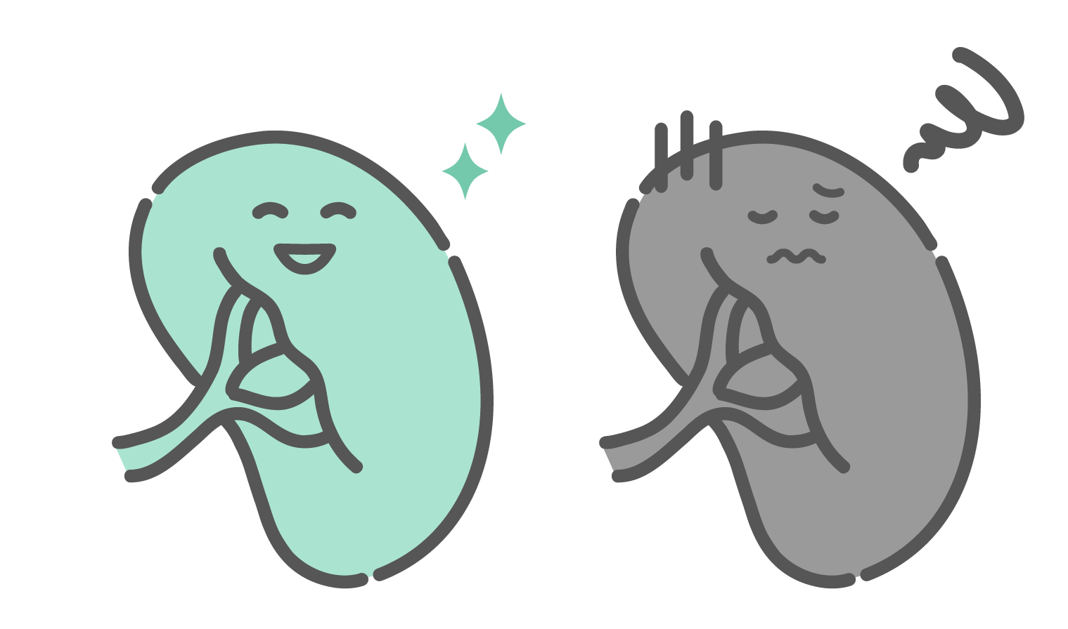 アイテム・アイコン 健康な脾臓と不調な脾臓の比較イラスト(キャラクター・免疫機能)