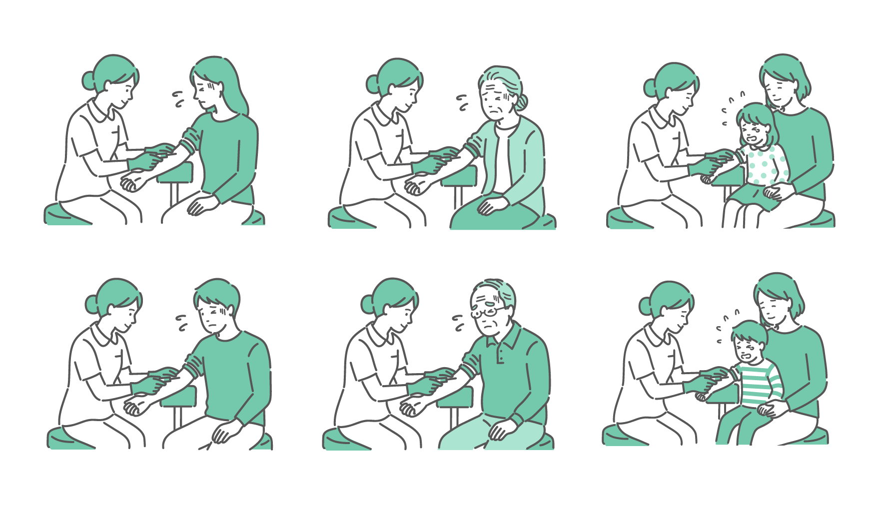 採血・注射のバリエーションイラストセット(全年齢・男女・子供)