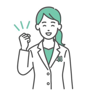 ガッツポーズをする女性医師・薬剤師のイラスト(応援・達成)