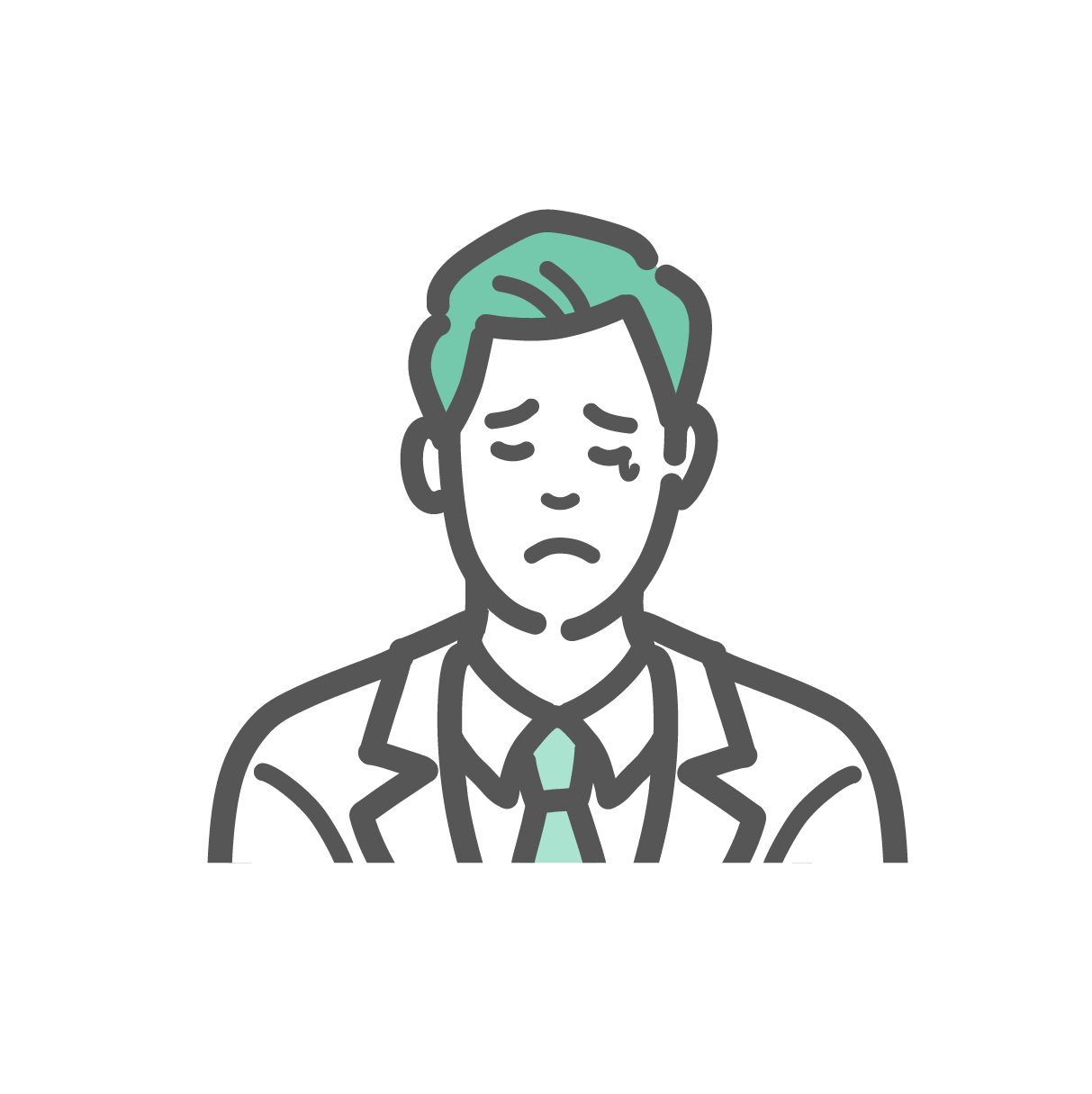 人物・アイテム 目を閉じ、悲しい表情でうなだれている白衣の男性のイラスト
