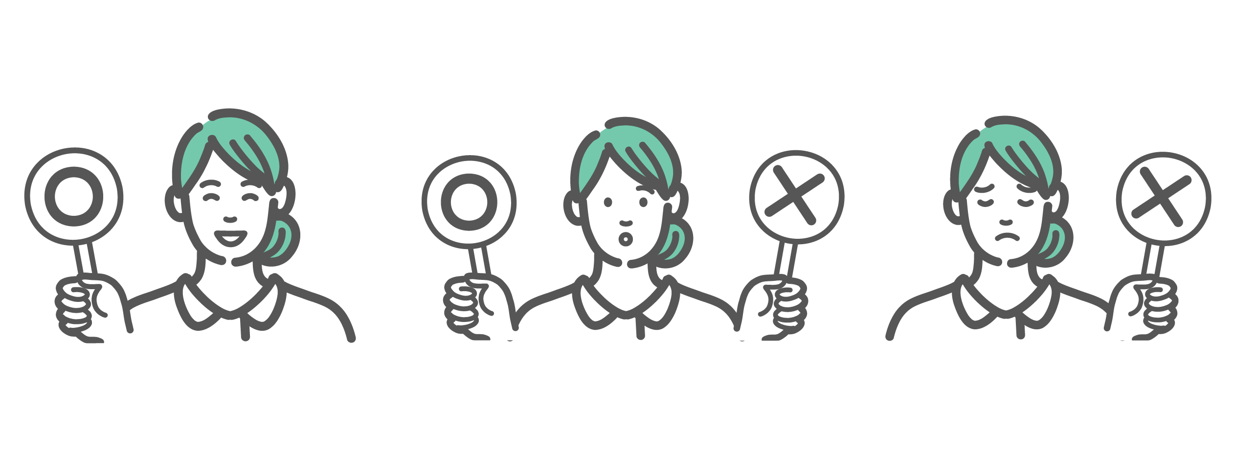 人物・アイテム OK・NGをジェスチャーする看護師(女性)のイラストセット