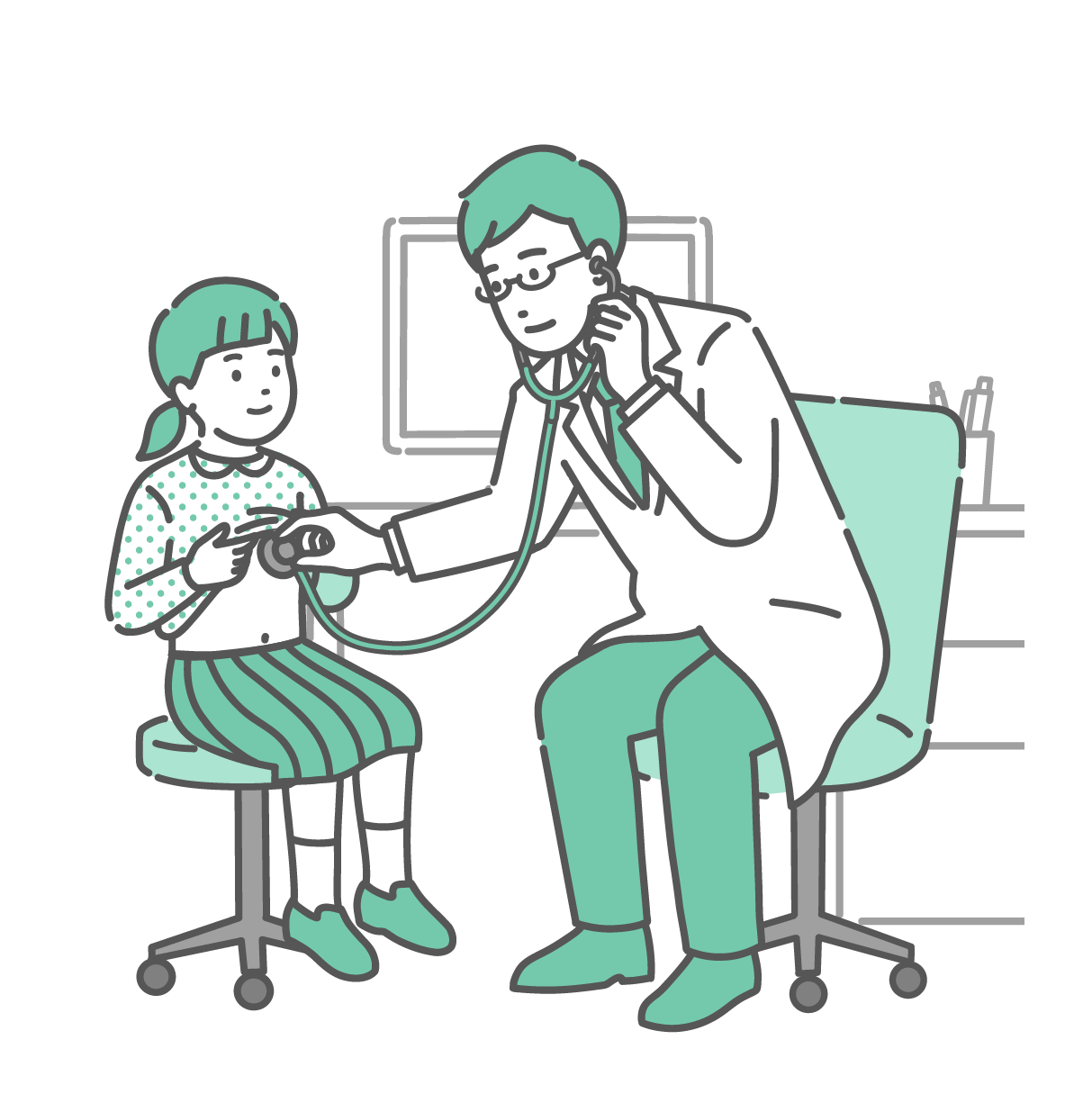 聴診器で女の子を診察する男性医師(白衣・小児科・子供)