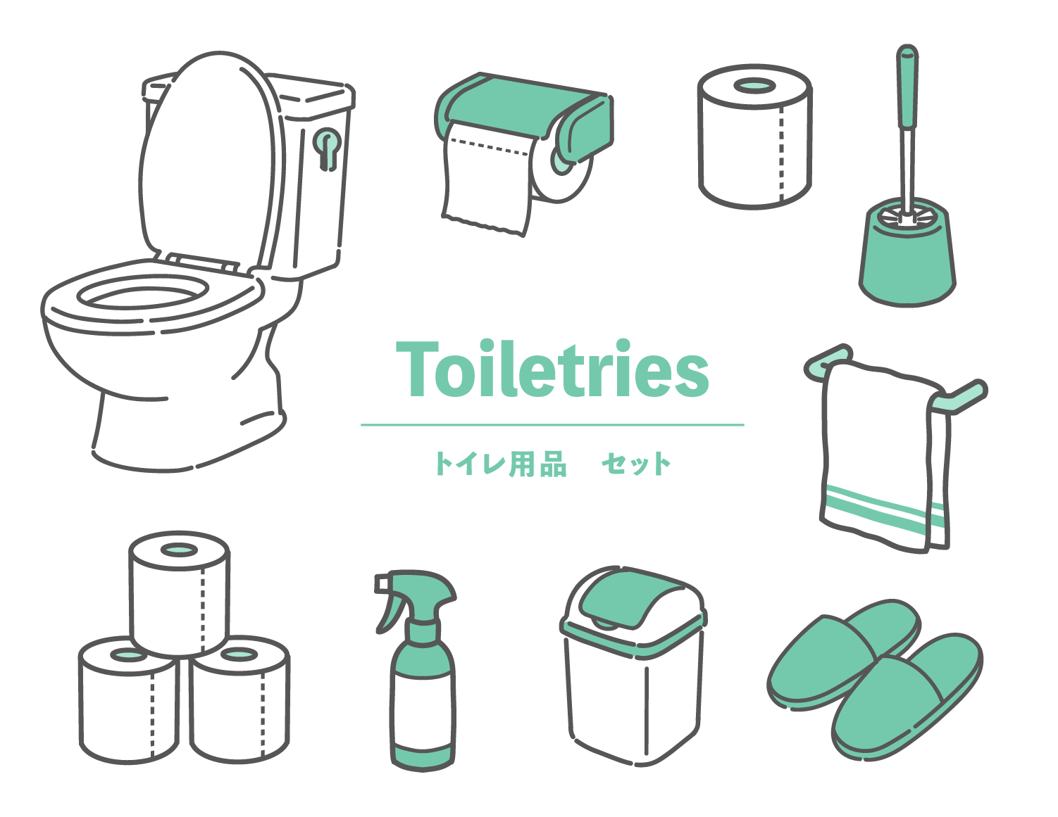 トイレ用品・掃除用具のイラストセット