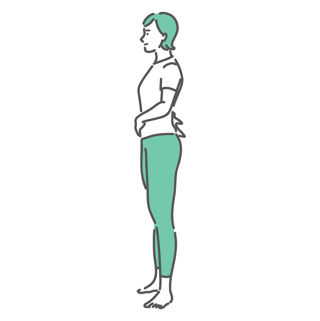 腰割り体操の立ち姿勢を側面から見た女性のイラスト