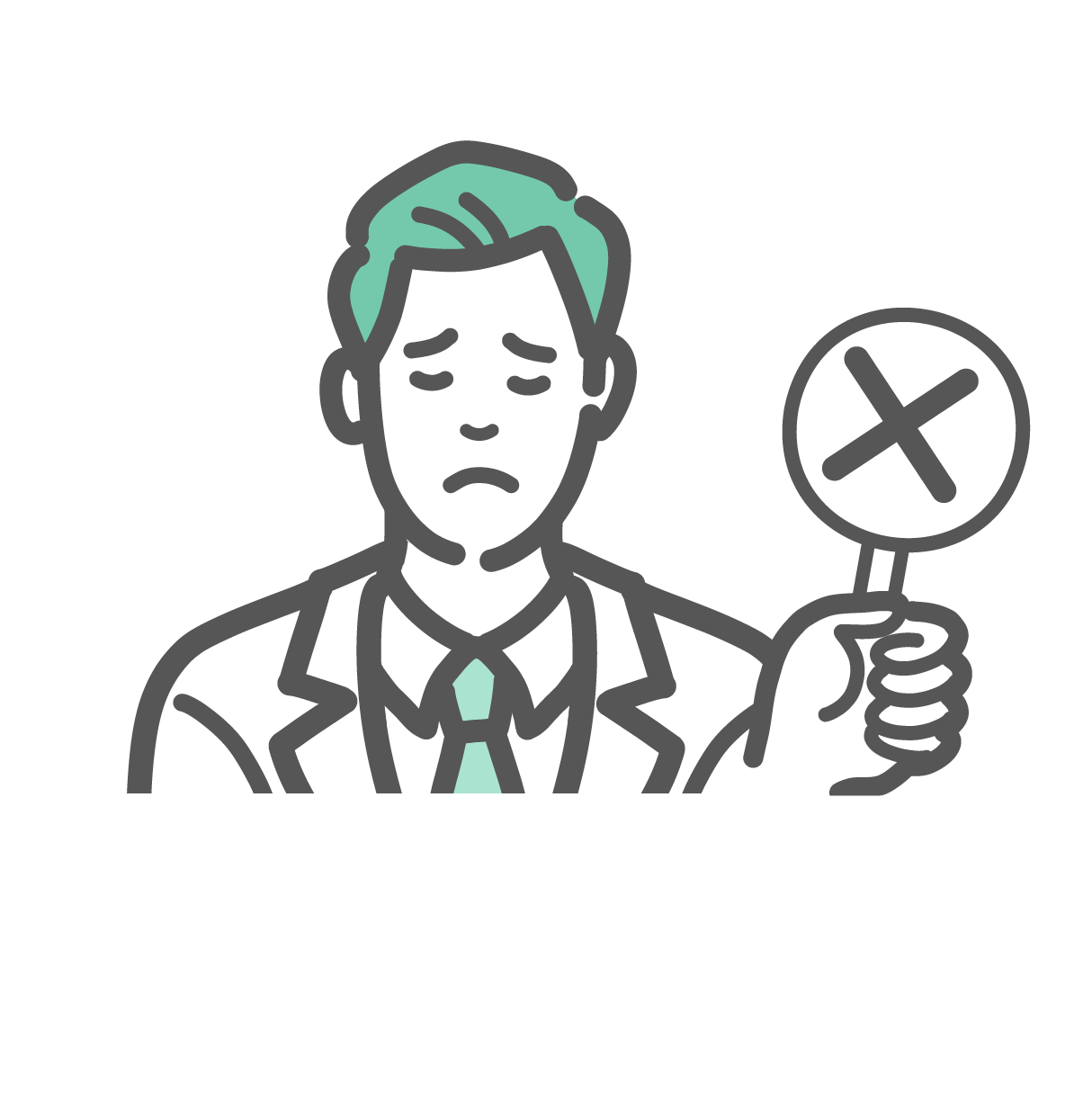 バツ(NG)の札を持ち、悲しい表情で否定する白衣の男性のイラスト