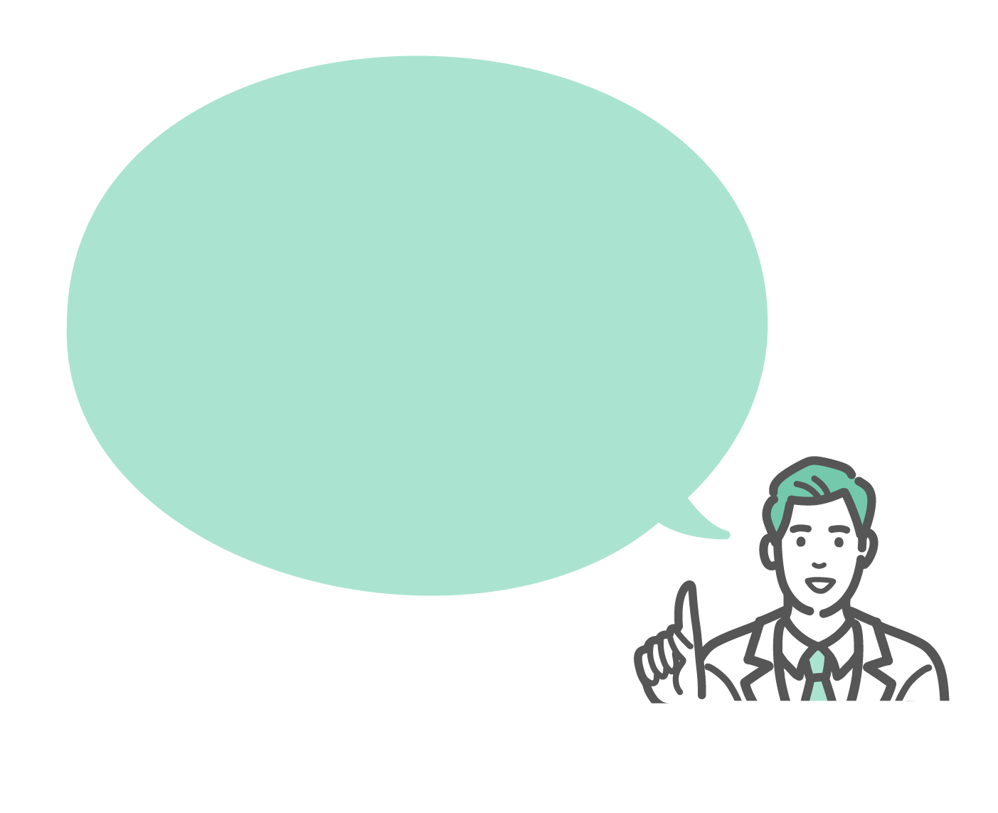 人物・アイテム 人差し指を立て、大きな吹き出しで注意点や提案を促す白衣の男性のイラスト