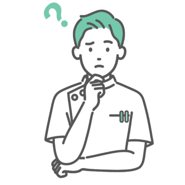 医師 悩む・考えるスクラブ姿の男性医療従事者のイラスト(上半身)