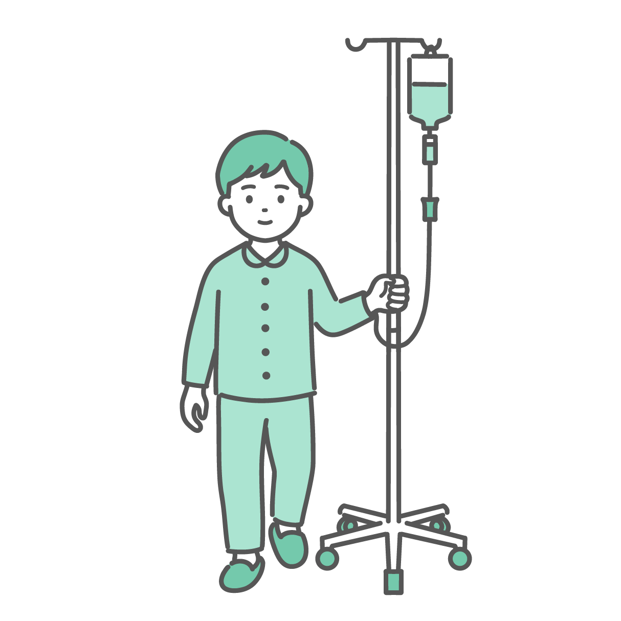 治療・処置 点滴スタンドを押して歩く男性患者(入院着・パジャマ)