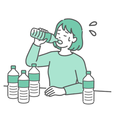 生活習慣 喉が渇いて大量の水を飲む女性のイラスト(糖尿病・多飲・口渇・熱中症)