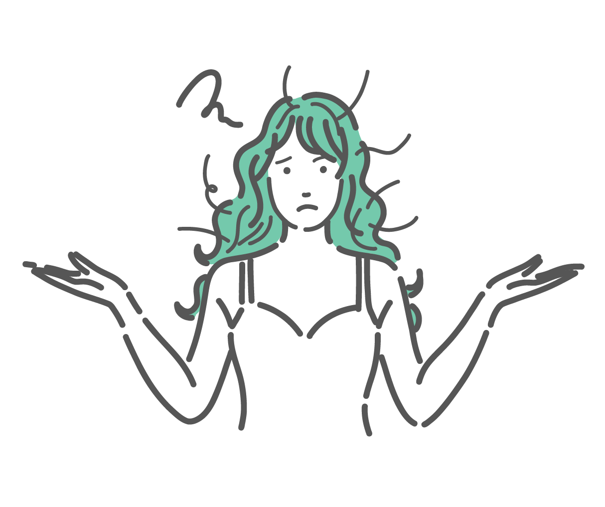 うつ・メンタル不調 両手を広げて困惑する女性のイラスト(質問・悩み・不調)