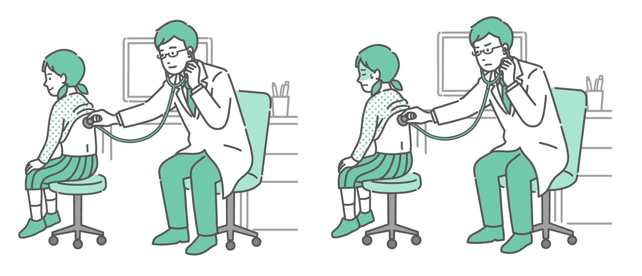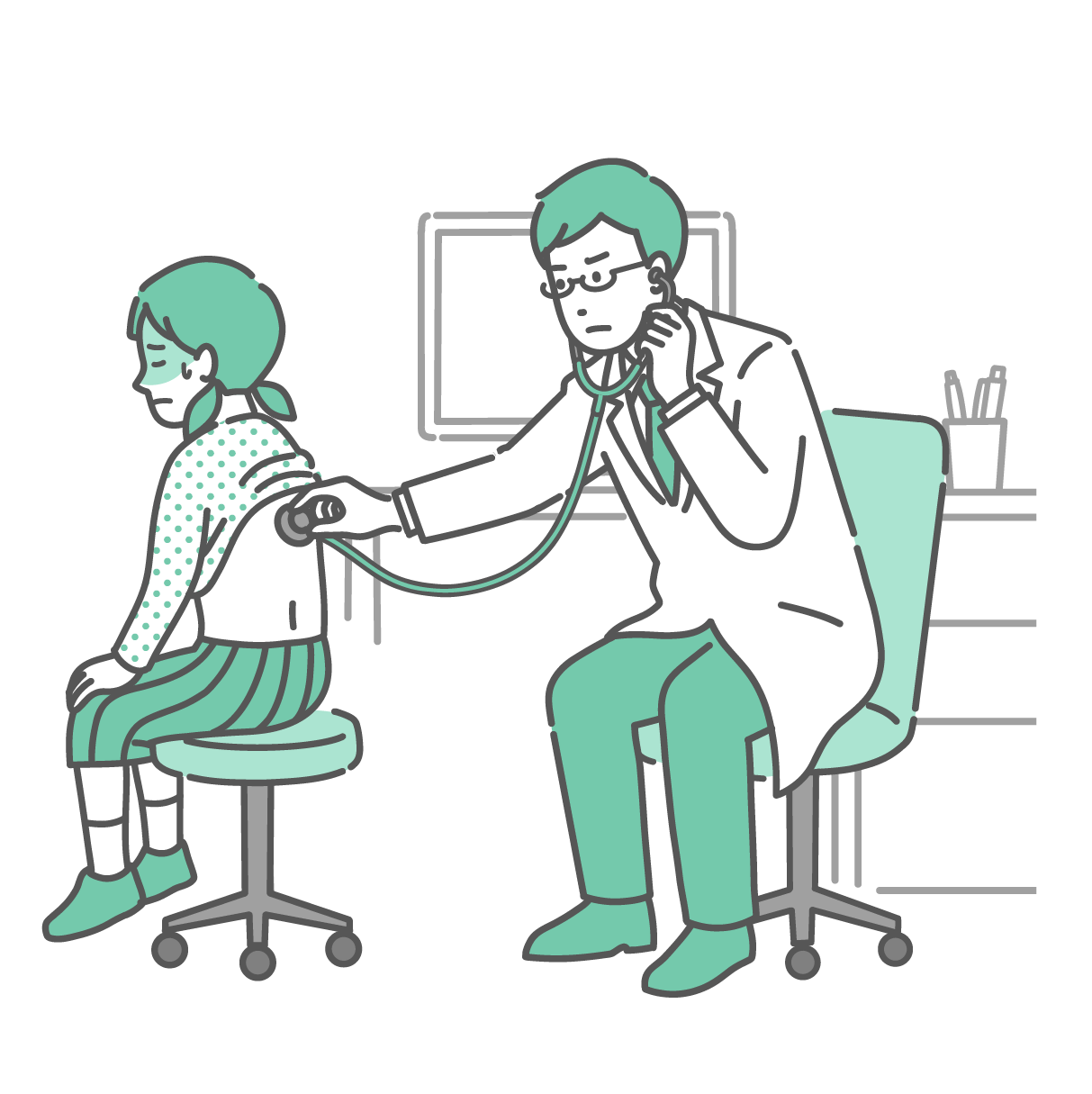 季節・アレルギー症状 白衣を着用した男性医師による女の子の背中の聴診イラスト