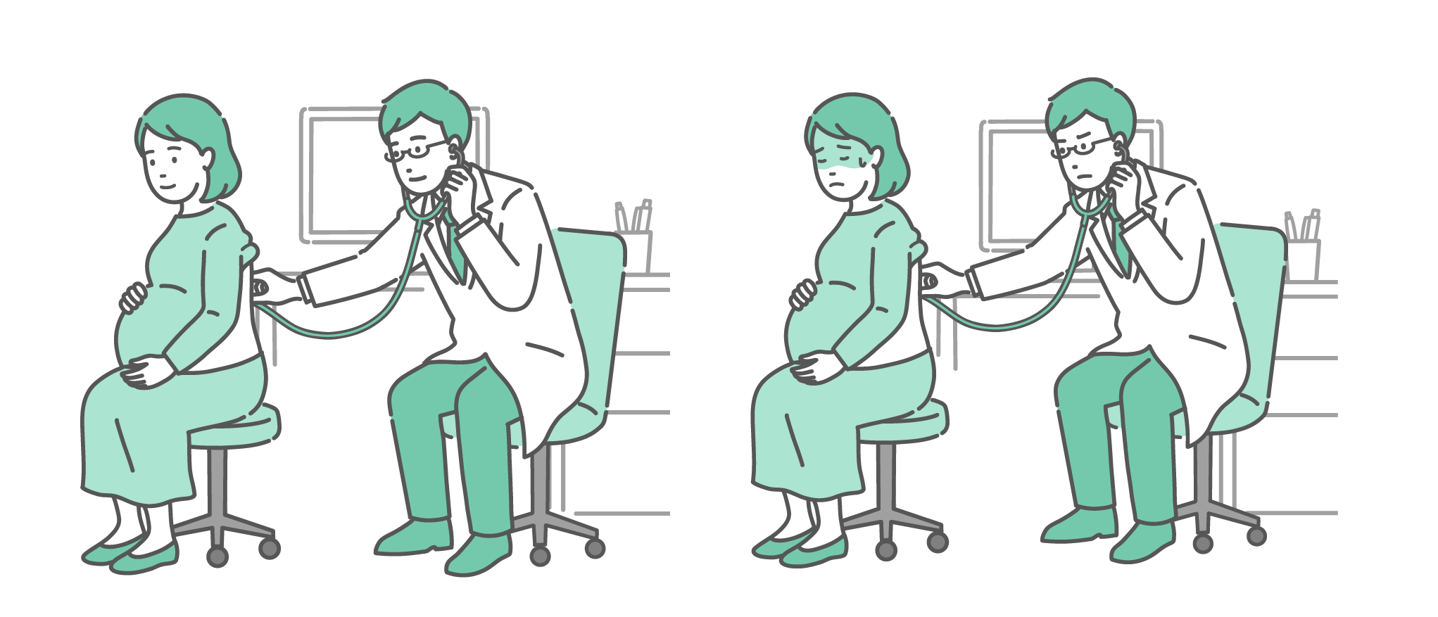 季節・アレルギー症状 白衣を着用した男性医師による赤ちゃんの背中の聴診イラストセット(正常・異常/体調不良)