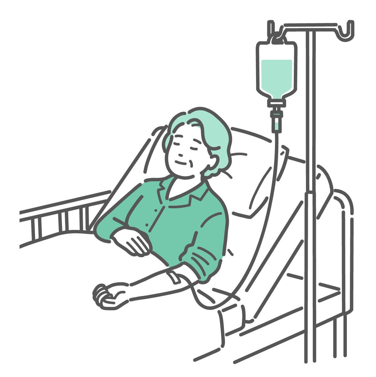 介護・福祉 入院して点滴を受ける高齢の女性患者のイラスト(安静・回復)