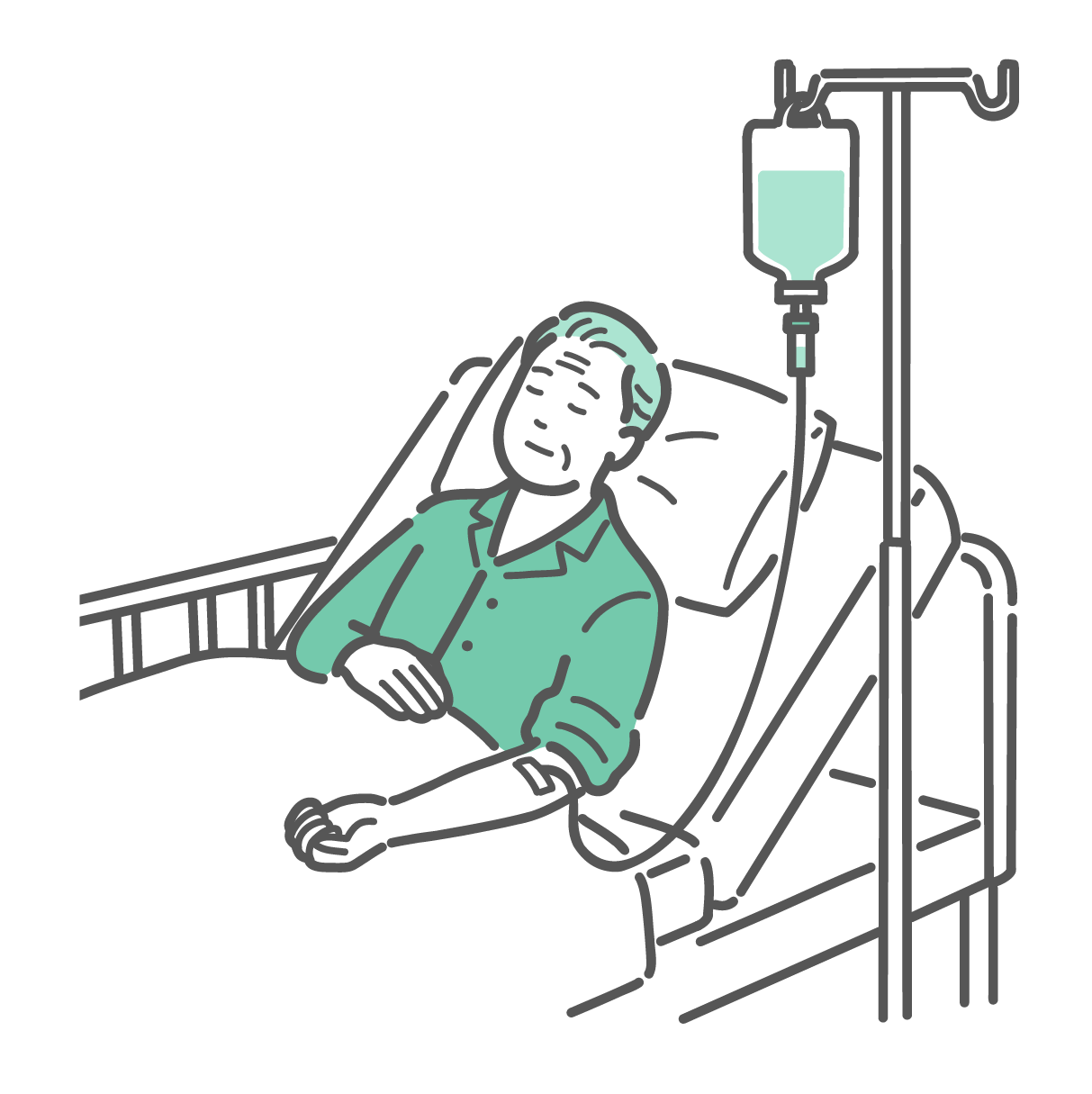 介護・福祉 入院して点滴を受ける高齢の男性患者のイラスト(安静・介護)