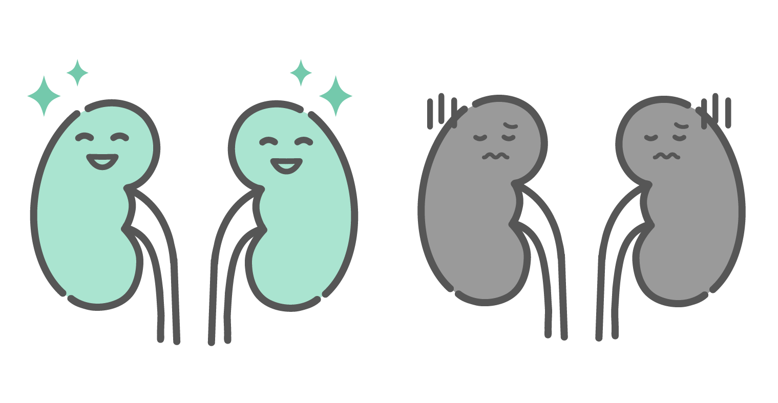 健康な腎臓と不調な腎臓の比較イラスト(キャラクター)