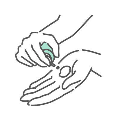 手にマッサージオイル・ローションを出すイラスト(手元)