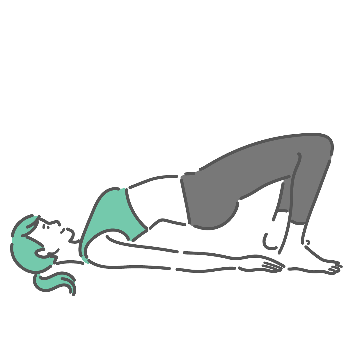 ヒップリフト(グルートブリッジ)で腰を持ち上げた状態(トップポジション)の女性のイラスト
