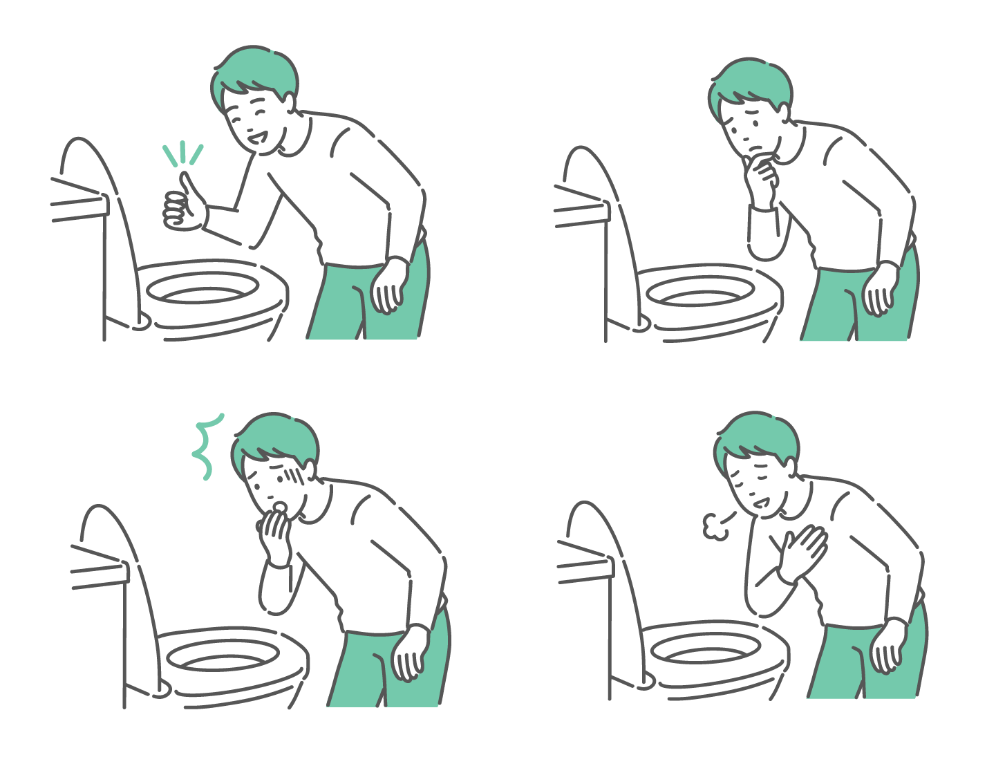 検査・測定 トイレで便の状態を確認する男性のイラストセット(OK・困る・驚く・安心)
