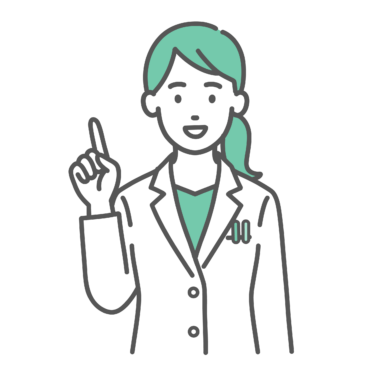 医師 指差し・解説をするスクラブ姿の女性医療従事者のイラスト(上半身)