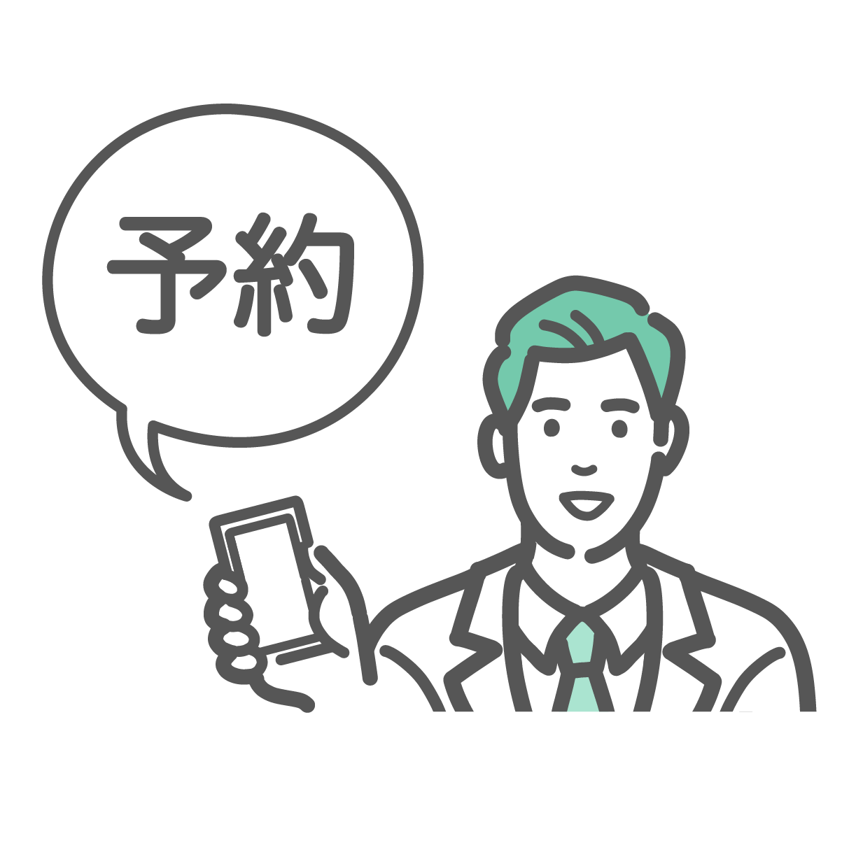 人物・アイテム スマートフォンで「予約」を案内・促進する白衣の男性のイラスト